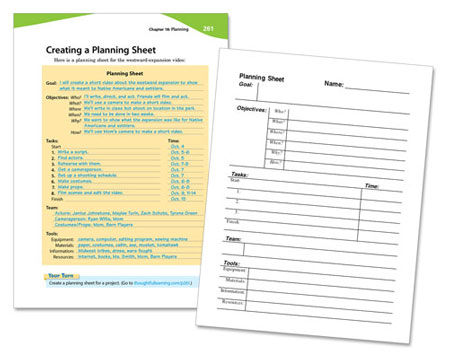 Inquire: A Guide to 21st Century Learning provides students a single sheet that guides them through this planning process. By completing the sheet, students can develop a plan for any project.