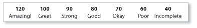Note that the total at the bottom functions as a percentage score for the project—with a possible of 20 extra credit points for those who far exceed expectations.